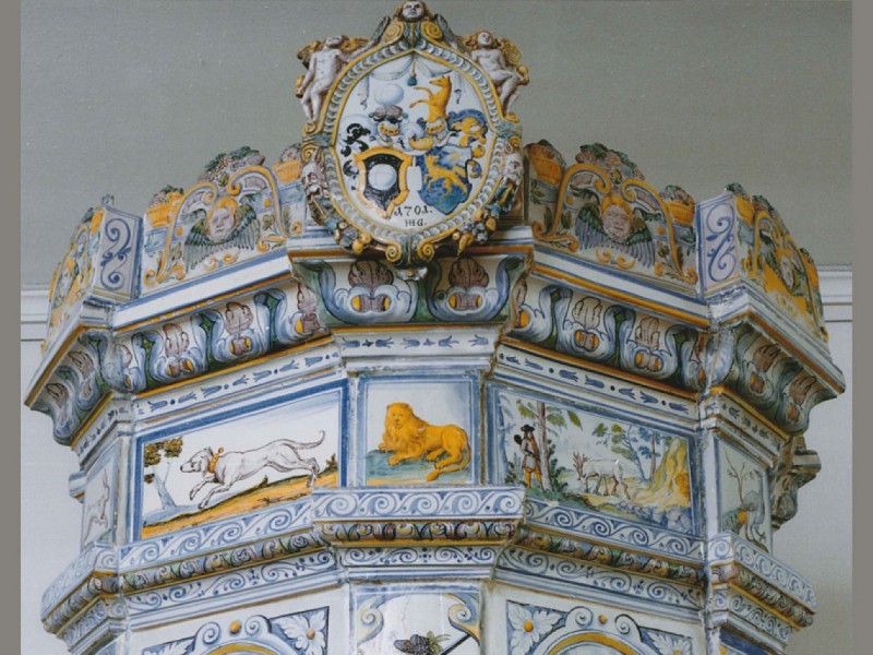 In quest’epoca furono ultimate stufe molto particolari; c’è un impiego variegato e ricco di contrasti cromatici nei toni del giallo-blu-verde-marrone e bianco. Zoccoli e cornici propongono motivi antichi finemente profilati (taglio a dente, catena di perle, ovali e Wasserwogenband). Caratteristica particolare di queste stufe sono alcune maioliche alte fino ad un metro di altezza, grandi corniciature, modelli di superfici sovraccariche di rappresentazioni figurative e ornamentali.